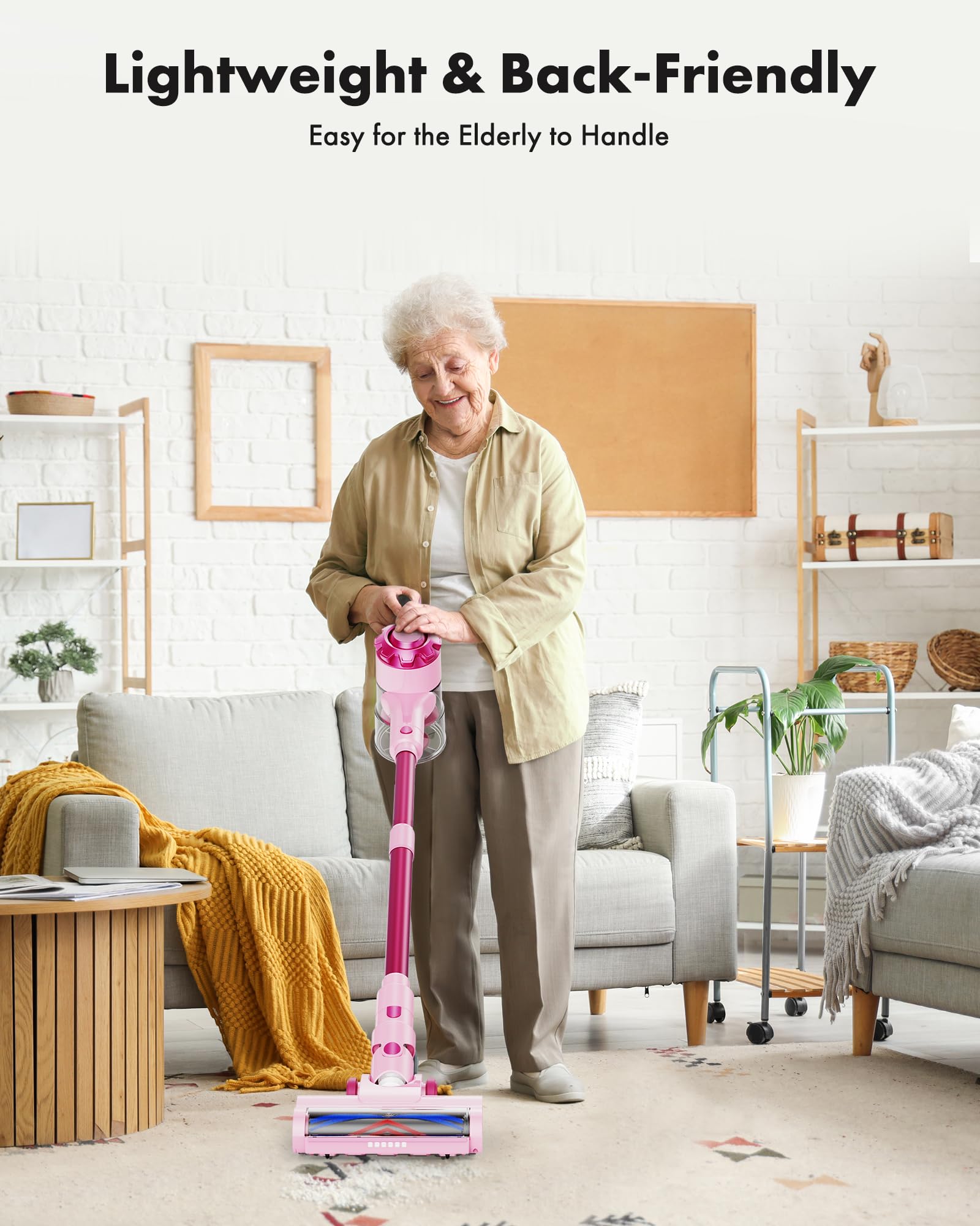 Trucozie Cordless Vacuum Cleaner, 8-in-1 Lightweight Stick Vacuum with 45mins Runtime, Powerful Suction, Rechargeable Cordless Vacuum for Carpet, Tile, Pet Hair, Hardwood Floors, Pink