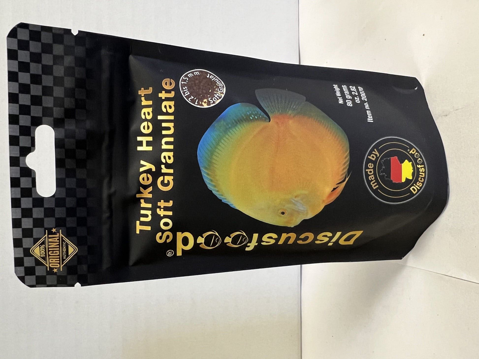 - Discusfood Turkey Heart Soft Granulate is an alternative to beef-based animal protein for feeding fish, providing a lower water pollution option compared to frozen food proteins.