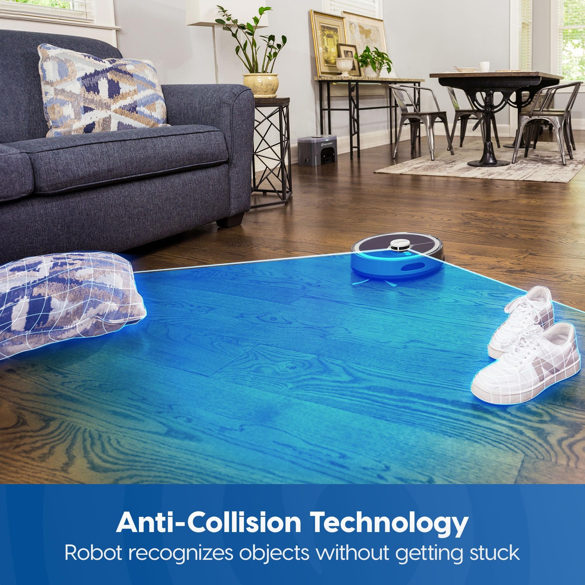 - Anti-Collision and Anti-Cliff Technology: Vac detects objects as small as 10 cm to prevent getting stuck and uses sensors to re-direct itself away from ledges