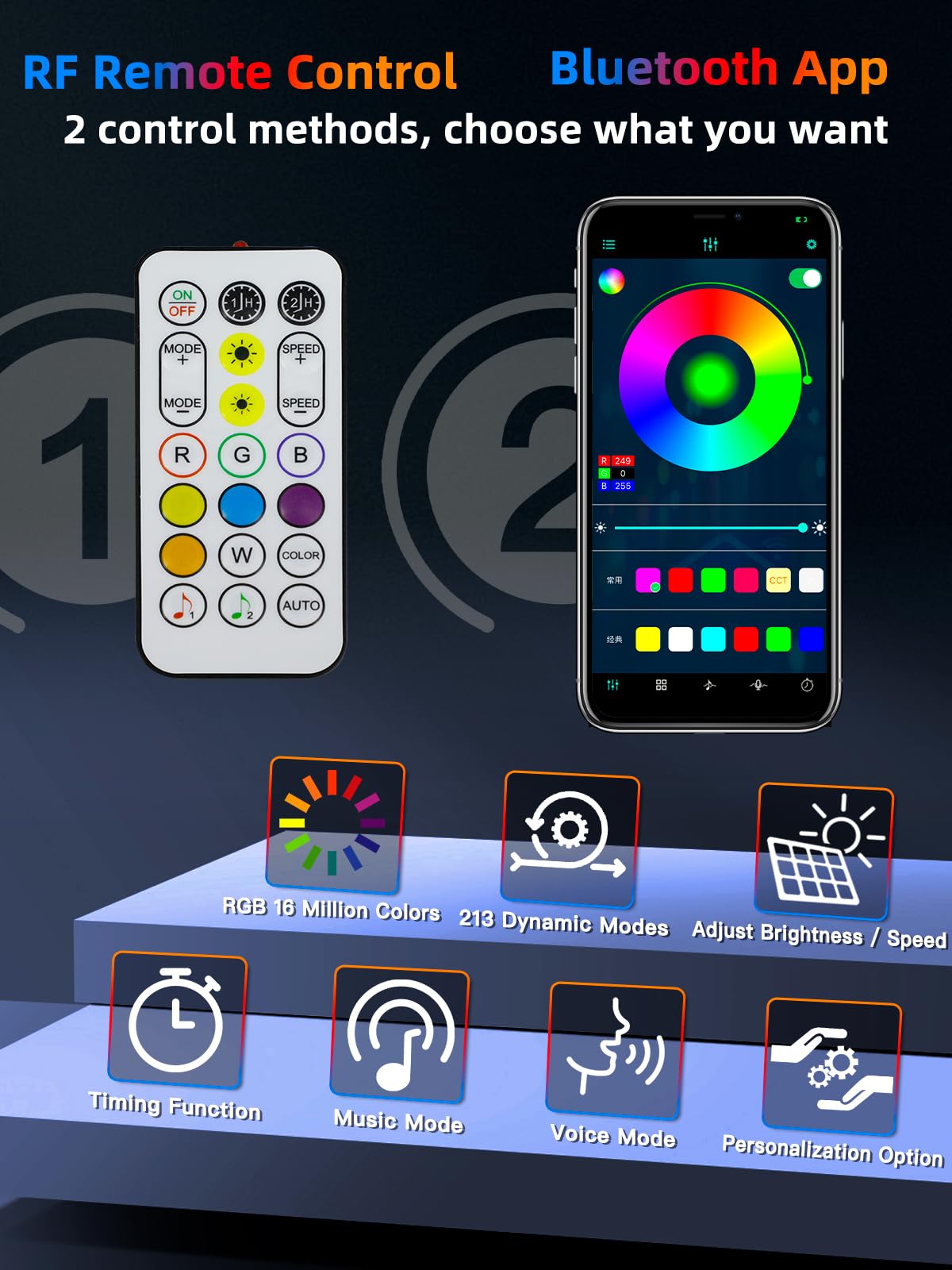 - Customizable RGB Angel Eyes Halo: VI9000 Jeep Wrangler LED Headlights multifunction RGB angel eyes halo with 16 million colors and 213 dynamic lighting modes. Control the timer function, music mode, voice mode, flash function, adjust brightness/speed via the easy-to-use app, allow you to switch between vibrant hues or subtle tones to match your style or mood