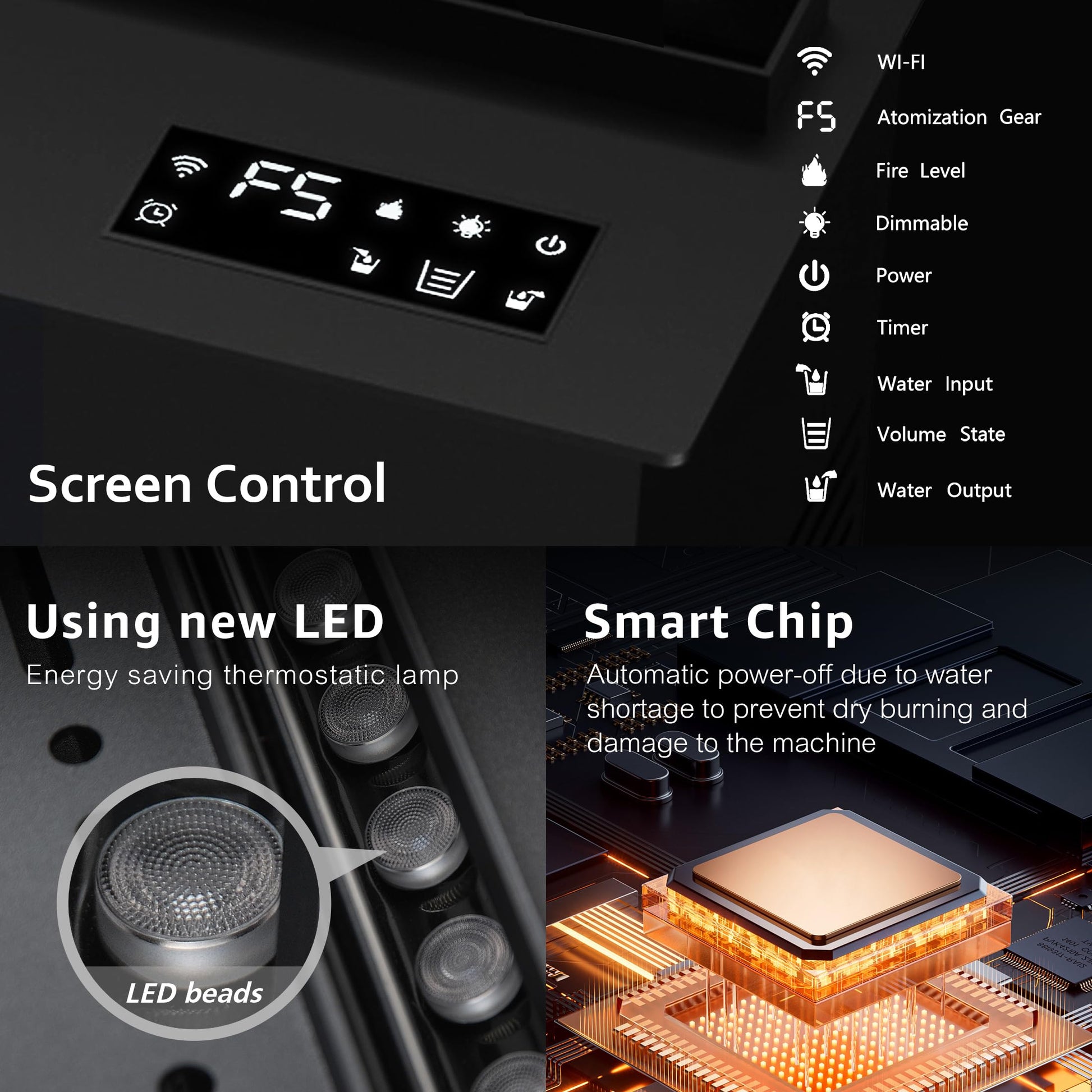 - đ„ă Flame Effectsă: 3D atomized flame fireplace, this innovative fireplace features a built-in misting system that creates the mesmerizing illusion of a realistic flame. The misting flames add a touch of elegance and tranquility to any room, providing a cozy and inviting environment.
