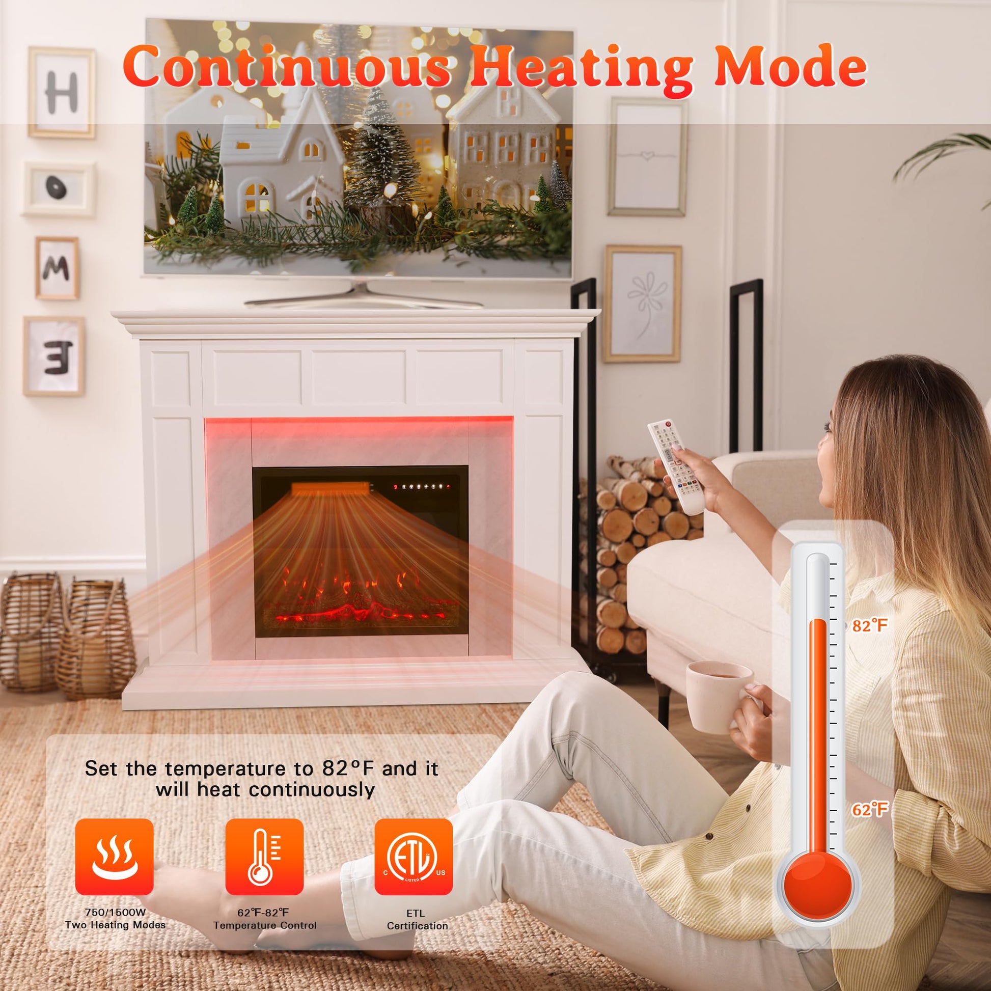 - Quiet and safe use: This real flame electric fireplace with mantel has overheat protection to ensure safe and reliable use. Once the internal temperature of the fireplace rises beyond the safe range, the overheat protection device will automatically cut off the power of the fireplace, thereby quickly and effectively preventing further temperature rise. At the same time, the noise reduction process is adopted, which can effectively reduce the noise during the heating process.