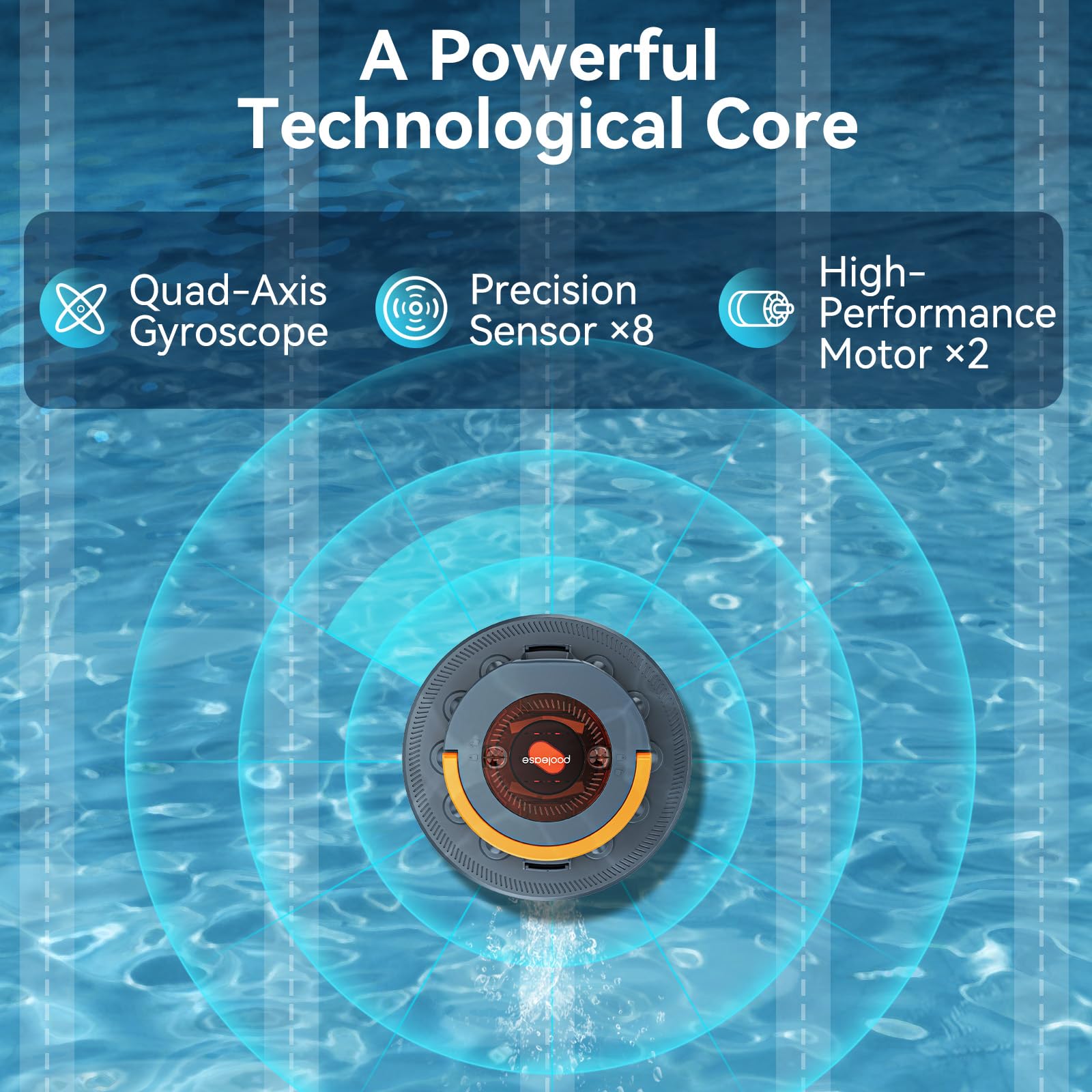 - 【Powerful Technological Core】The Poolease X2 pool cleaner uses four-axis gyroscope tech and eight precision sensors for 95% cleaning coverage. It has the industry's toughest motor shaft at HRC45 hardness, offering superior wear resistance and a lifespan extension of 60%.