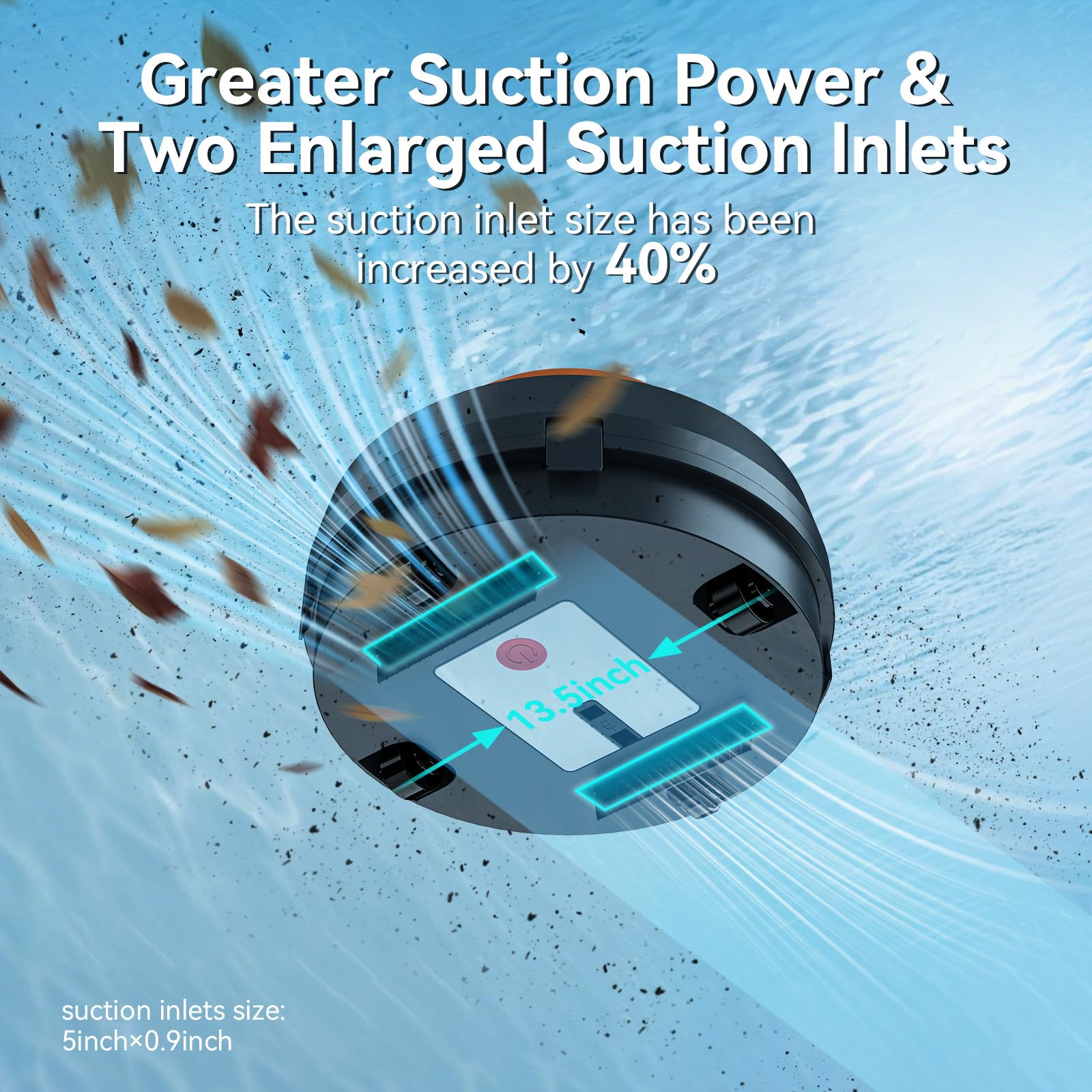 - 【Pool Cleaning Efficiency Improved by 95%】Poolease X2 pool cleaner features a dual-motor design, which boasts a 50% longer lifespan compared to single-motor products. The enlarged dual suction inlet design, paired with a 45W high-power motor, effortlessly picks up sand, hair, and leaves from the pool. With a large 2L capacity, it can hold more debris.