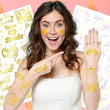 Bride Glitter Tattoos, Cheers Bachelorette Temporary Metallic Face Stickers, Party Decorations, Bridesmaid Favor, Gifts for Girls Women (GOLD)