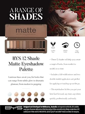 BYS 12 Shade Matte Eyeshadow Palette Tin Collection with Mirror, Double Ended Applicator and Blender, Nude Smoke