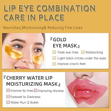- Great Value Pack: The pack includes 15 pieces collagen crystal pink lip masks and 15 pieces 24k gold eye masks, Extremely gentle and nourishing, hydrating, firming and lifting the skin, reduce dark circles & wrinkles & lip lines, make your lip & eye more glam