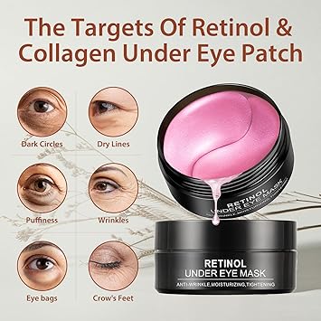 - MOISTURIZING: Our Retinol Collagen Eye Mask improves the appearance of dark circles, puffy eyes, puffy eyes, and wrinkles, comes with gentle and effective ingredients for all skin types and for men and women of all ages, instantly feel hydrated, moisturized, and flushed with moisture with the first use. Improve the dry eye area.
