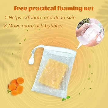- 【Free Bubble Net】 Contains 3 bars of turmeric face wash soap and give away a soap foaming net. For deeper cleansing, put the turmeric body soap into the foaming net, wet with water and rub to foam before applying on your face or body.