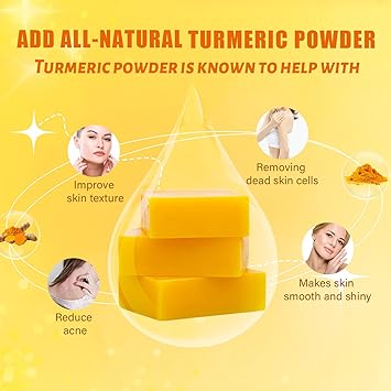 - 【Premium Exprience】Turmeric Soap bar can be rubbed to a rich, fine and smooth foam bringing a premium bath experience, leaving a refreshing natural scent. Apply with foaming net even help exfoliate dead skin.