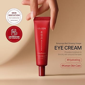 Bonyongo Red Ginseng Vinegar Eye Cream - Anti Aging Treatment for Youthful Radiant Skin - Wrinkle Improvement with Fermented Korean Skincare, 1.01oz.