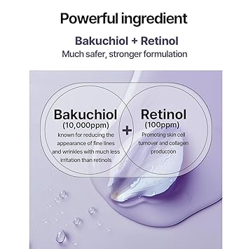 - AGE-DEFYING POWER: Formulated with 1% Bakuchiol, a plant-based retinol alternative, and 0.01% retinol to smooth the appearance of fine lines, wrinkles, and enhance skin’s elasticity.