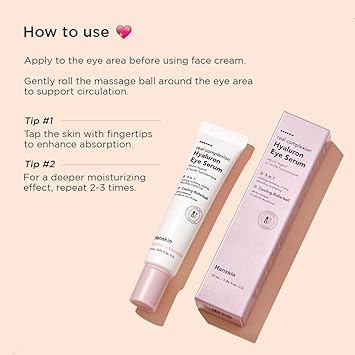 Hanskin Real Complexion Hyaluron Eye Serum, 360° Massage Applicator, De-Puff Moisturize Hydrate [25ml]