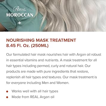 - UPDATE YOUR HAIR ROUTINE: Our Nourishing Mask treatment provides a salon experience in the convenience of your own home. Royal Moroccan mask strengthens brittle over processed hair. Apply a quarter size amount to wet hair, preferably after shampooing. Leave in treatment for 5-7 minutes and rinse. Use Weekly to restore and replenish and provide additional restoration when used with other Royal Moroccan hair treatment products.