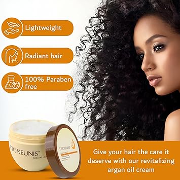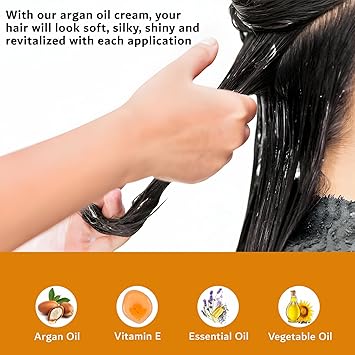 Give your hair the care it deserves with our revitalizing argan oil cream! Specifically designed to treat dry, damaged, frizzy and dull hair, as well as wigs and extensions, this cream is your secret ally to recover the health and beauty of your hair. Argan oil, known for its nourishing and repairing properties, penetrates deeply into the hair fiber to restore lost hydration, softness and shine. Its lightweight, non-greasy formula absorbs quickly, leaving no greasy residue, and protects hair from damage caused by heat, chemicals and styling tools. With our argan oil cream, your hair will look soft, silky, shiny and revitalized with each application. Regain confidence in your hair and show off healthy, radiant hair like never before!.