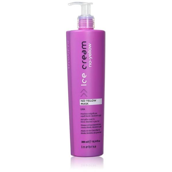 Ice Cream no-yellow mask by Inebrya for the care of blonde and grey hair. Regenerates and removes yellow tones from hair. Gives hair a shiny effect. Directions for use: After washing, spread evenly over the hair. Leave to work for 5 minutes, then rinse.