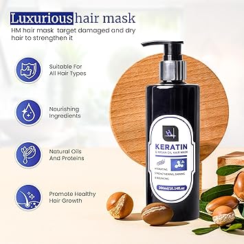 - Rest assured that our HM keratin and argan oil mask undergoes rigorous manufacturing protocols to guarantee highest quality and hygienic packaging. It is easy to apply and it can be used once or twice a week.