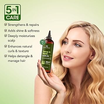 - Deeply Hydrates: Enriched with omega fatty acids, hemp oil deeply hydrates hair, taming frizz and flyaways for smooth, manageable hair. It also helps strengthen and protect hair from environmental damage