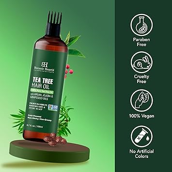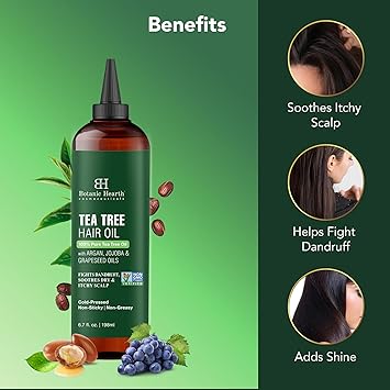 - Soothes Itchy & Dry Scalp: The Botanic Hearth Tea Tree hair oil contains natural tea tree oil that provides a calming effect on the scalp, relieves dryness & itchiness while leaving the hair feeling clean & refreshed