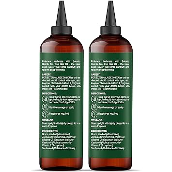 Botanic Hearth 100% Pure Tea Tree Oil for Hair (6.7 fl oz, Pack of 2) | Infused with Jojoba & Grapeseed Oils Soothes Itchy Scalp Fights Dandruff Non GMO Verified