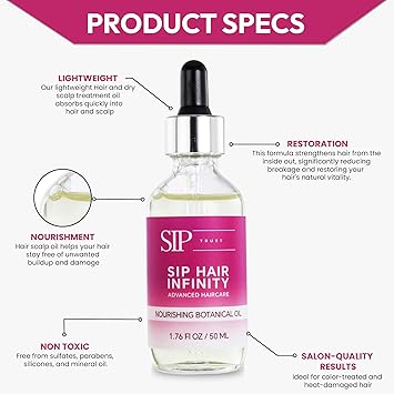 SIP TRUST Nourishing Botanical Hair Oil (50ml/1.76 fl oz) is an advanced hair care solution crafted with a blend of Botanical hair growth oil, ingredients like grapeseed, jojoba, and moringa. This lightweight, non-greasy hair treatment oils penetrates deeply to repair and strengthen weak, damaged, or over-processed hair. Free from sulfates, parabens, and silicones, hair oil for hair growth hydrates and nourishes the scalp, promoting healthy hair growth while reducing breakage by up to 95%. Suitable for all hair types, hair oil for scalp health and hair growth helps you achieve softer, shinier, and healthier-looking hair without weighing it down. Ideal for all hair types, including color-treated hair.