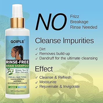 - No-Rinse Formula: Bid farewell to the rinse-and-repeat routine. Our innovative no-rinse braid shampoo simplifies your hair care regimen, providing a water-free solution that cleanses, refreshes, moisturizes, rejuvenates, and invigorates all protective hairstyles.