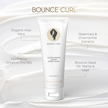 Bounce Curl Super Smooth Cream Conditioner, Lightweight Conditioner Infused with Aloe & Safflower Oil, Hydrating Formula For Fine and Medium Hair Textures, Color Safe Vegan (8 oz)