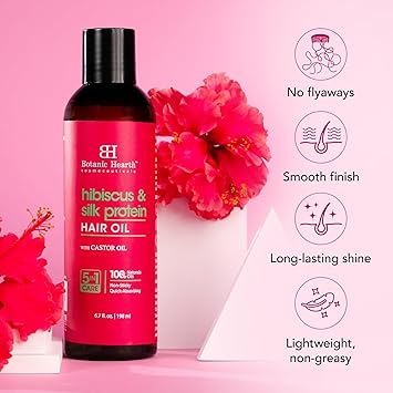 Botanic Hearth Hibiscus & Silk Protein Hair Oil (6.7 fl oz) | Growth, Hydration Repair Tames Frizz, Adds Shine After Wash Lightweight For Dry, Damaged All Types