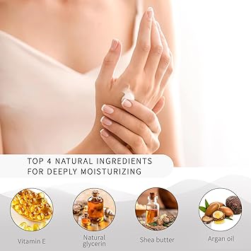 - Enriched with Natural Core Ingredients: Consisting of natural glycerin, shea butter and vitamin E to gently soothe and soften dry, rough hands, these moisturizing natural creams protect your skin from oxidative stress for more youthful looking hands.