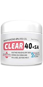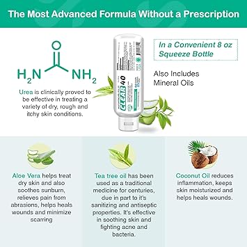 CLEAR 40, 40% Urea Gel, 8 oz w/Tea Tree & Coconut Oil, Aloe Vera Extract, Works on Calluses Corns, Moisturizes Softens Cracked Heels, Feet, Elbows, Hands, Nails, Superior Hydration to Creams