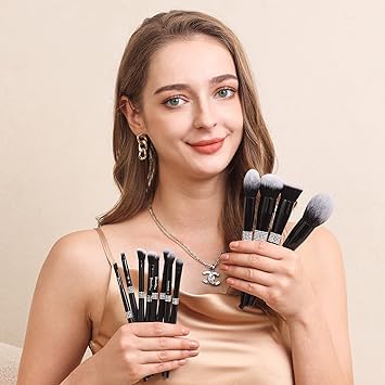 - 【Rhinestone Decoration Provide perfect Anti slip Experience】The rhinestones inlaid in the makeup brush are not only dazzling; they can be used for makeup or as your beautiful decoration, even if your fingers are stuck with makeup, the inlaid rhinestones just provide a good anti-slip effect, bringing you an extraordinary makeup experience .