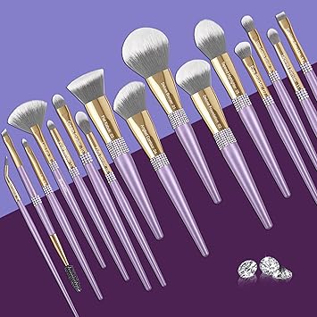 Bueart Design 16pcs Ultra Soft labeled Makeup Brushes Set kits Dense Hair -Make up brush set with foundation blush contour concealer powder Blush Blending (Violet)