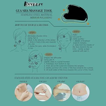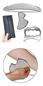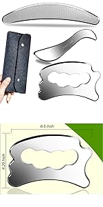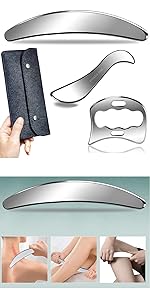 - Multi-functional: Stainless Steel Scraping massage tool can not only massage the face, but also be used for body scraping: Dip a certain amount of massage cream with the massage tool, repeatedly scrape the body part, so that the skin appears red blood spots or dark red hemorrhages, so as to achieve the effect of promoting blood and removing the sand.