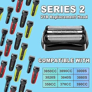 Braun 21B 2PCS, Series 3 Electric Shaver Replacement Head Compatible, Heads for Men Razor Shaving Blades Fit 3: 3040s 3000s 3050cc 3010s 3070cc 3080s