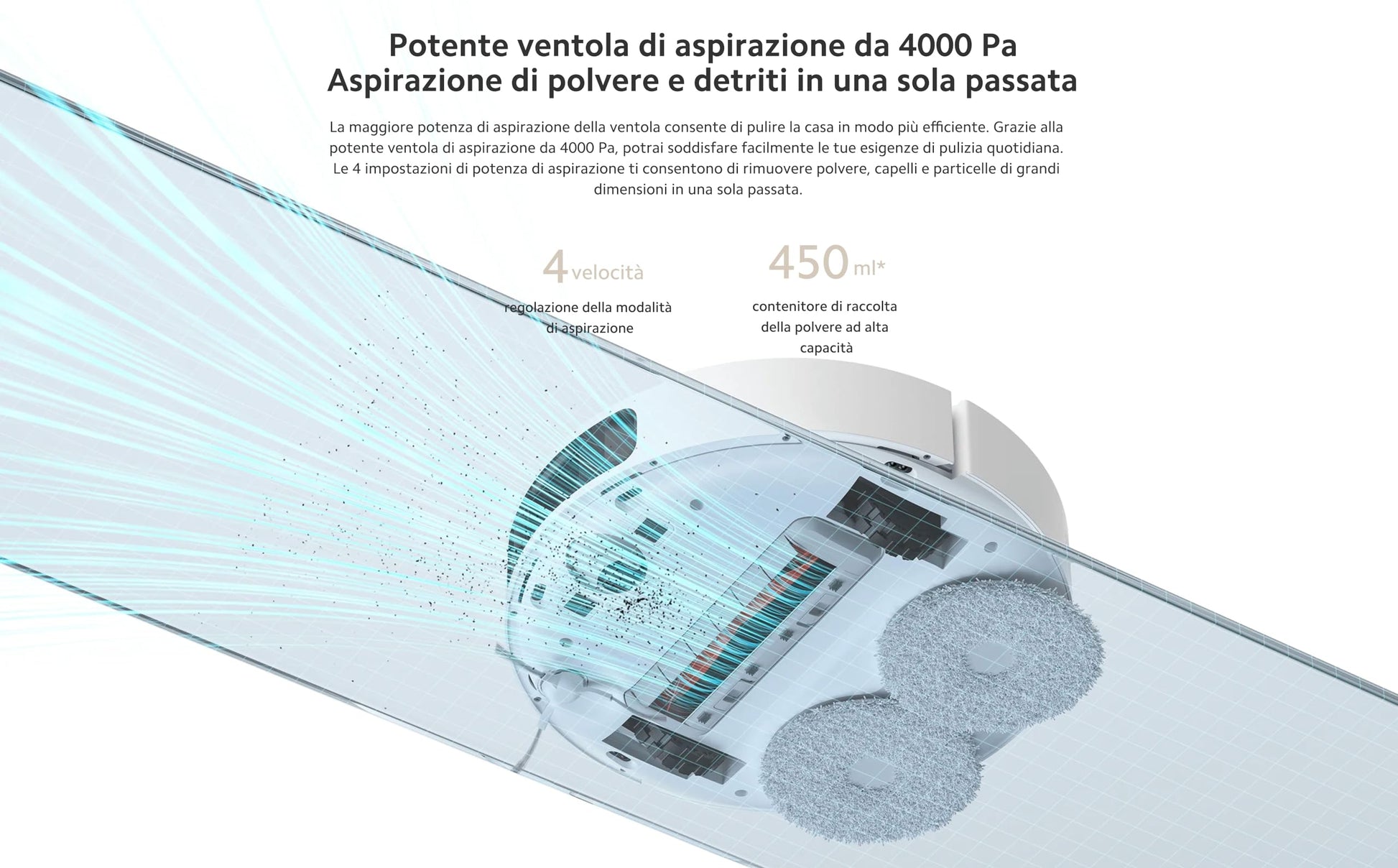 - [2 in 1 vacuuming & wiping] Equipped with 2 rotating wiper pads with pressure mop for better stain removal, automatic lifting of the wiper pads prevents clamping on the carpet edge when wiping; equipped with an intelligent water tank with 3 water flow levels, the device can adjust the water drain depending on the floor type to protect the floor from overwet