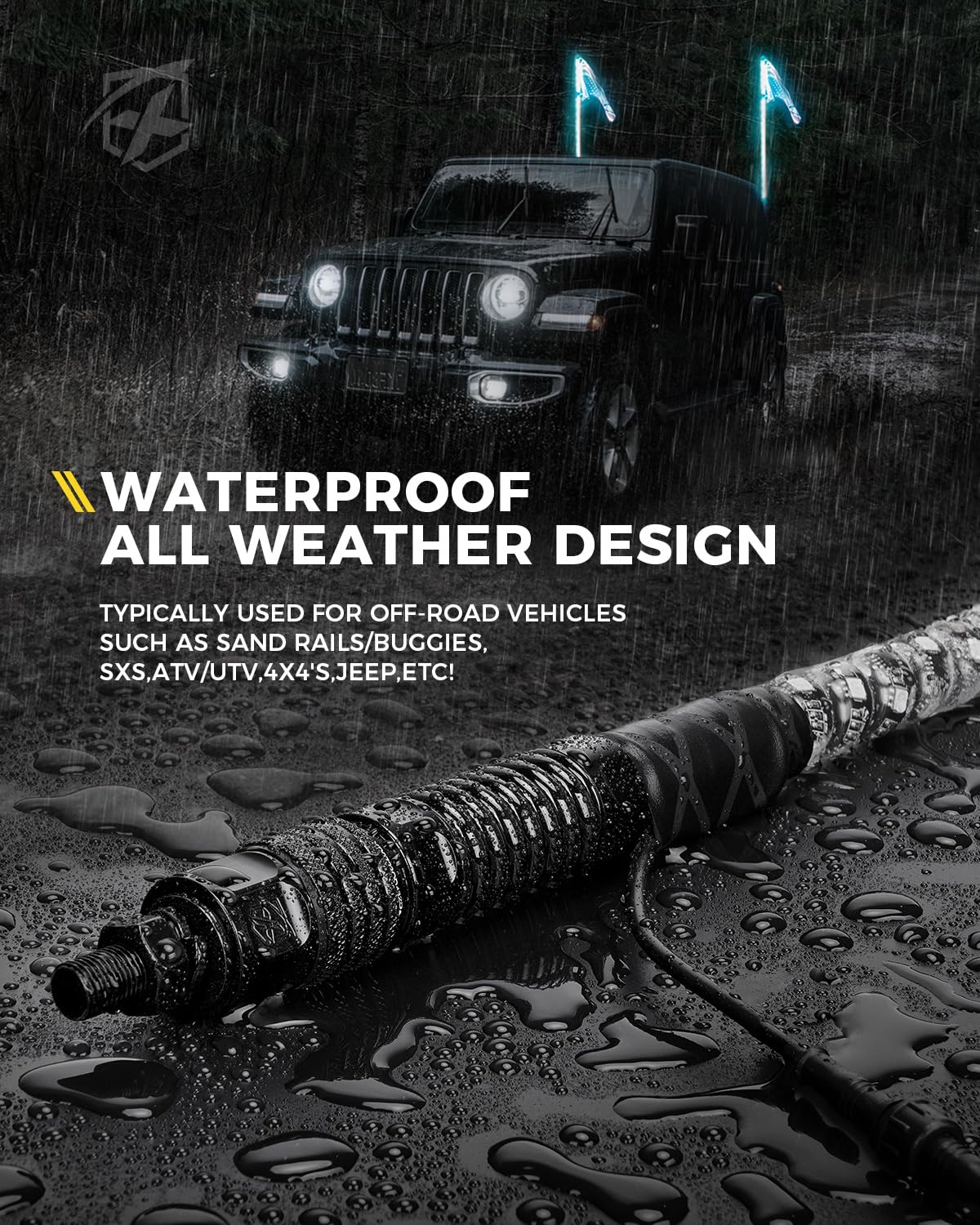 - 360° Glowing Spiral RGB Whip Light : Our upgraded LED whip light provides brighter LEDs to elevate your off-road experience.It makes you stand out on trails and enhances visibility during evening drives or challenging conditions.