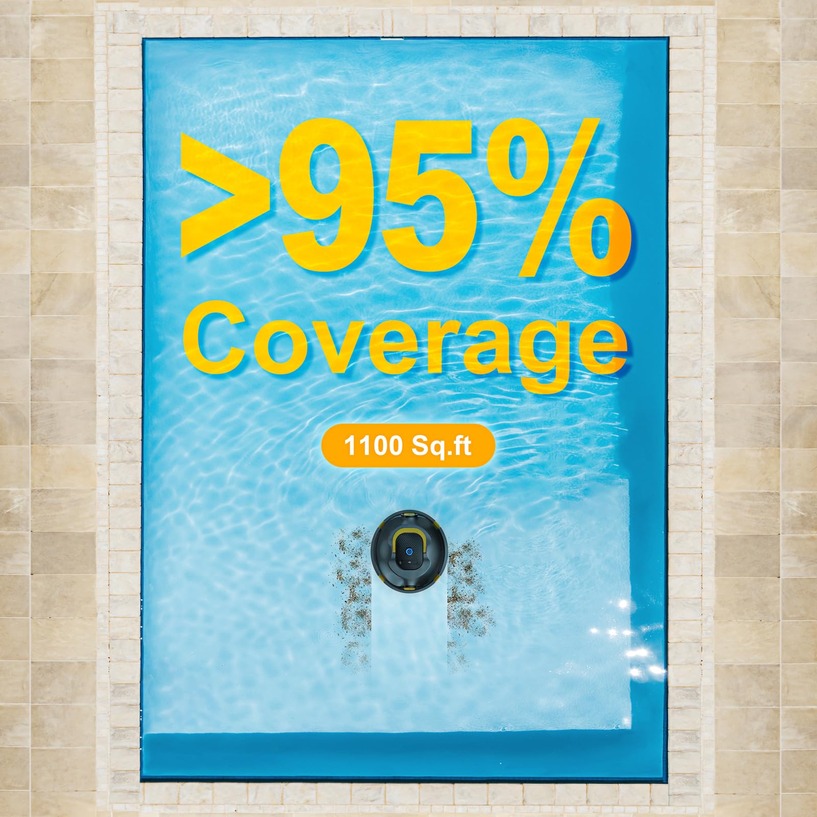 - 【90mins Long Runtime】- Equipped with a 5200mAh 6-cell battery, this pool vacuum for above ground pool delivers 90 minutes of continuous cleaning, enough to clean up to 1100 sq. ft