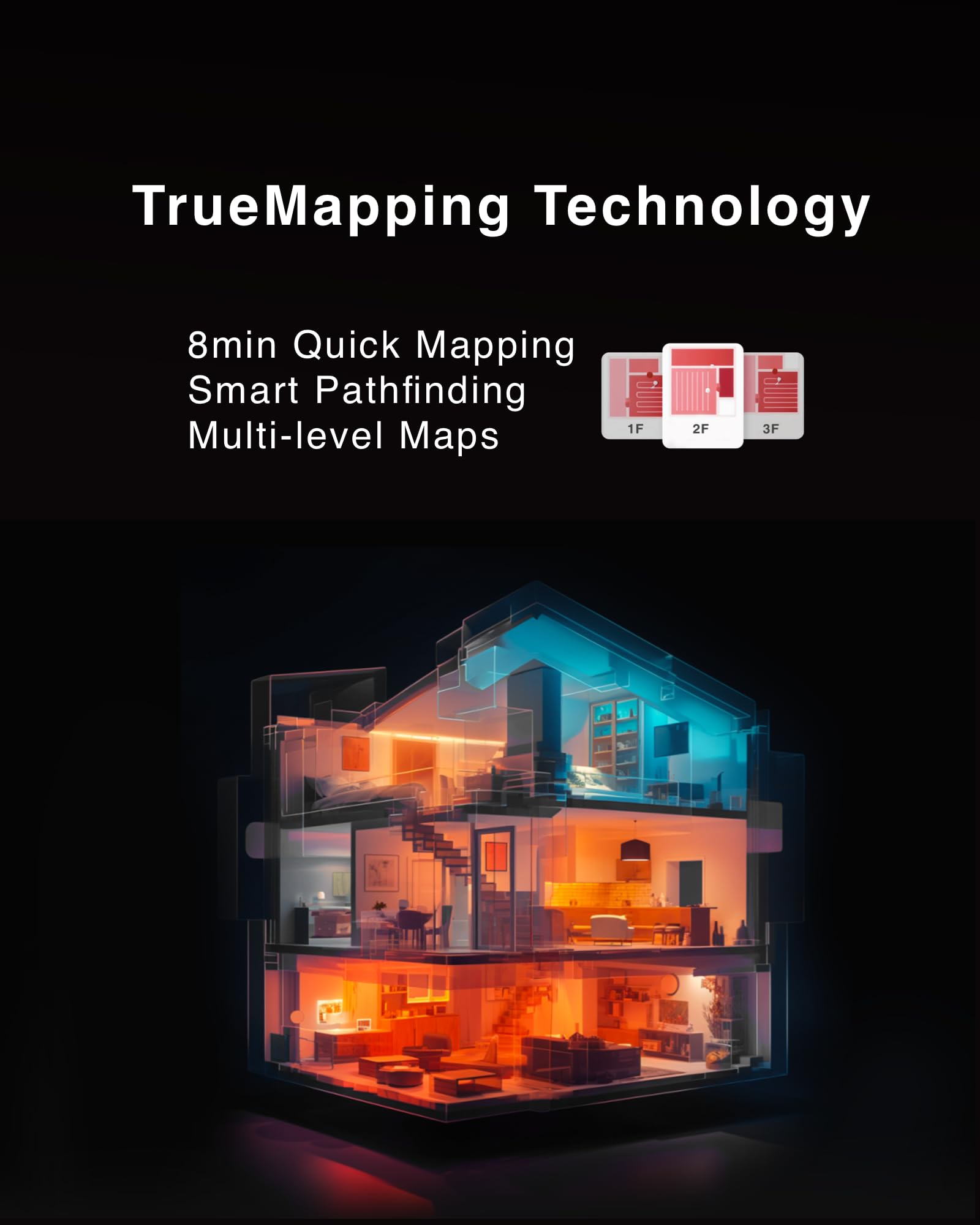 - TRUEMAPPING TECHNOLOGY - 8-minute fast mapping, close-range scanning accuracy can reach within 10mm, accurately positioning the room. TrueMapping intelligent path planning can perform 360-degree laser ranging scans within the range of the ranging radius, using the bow-shaped walking cleaning plan to comprehensively clean without any omissions.