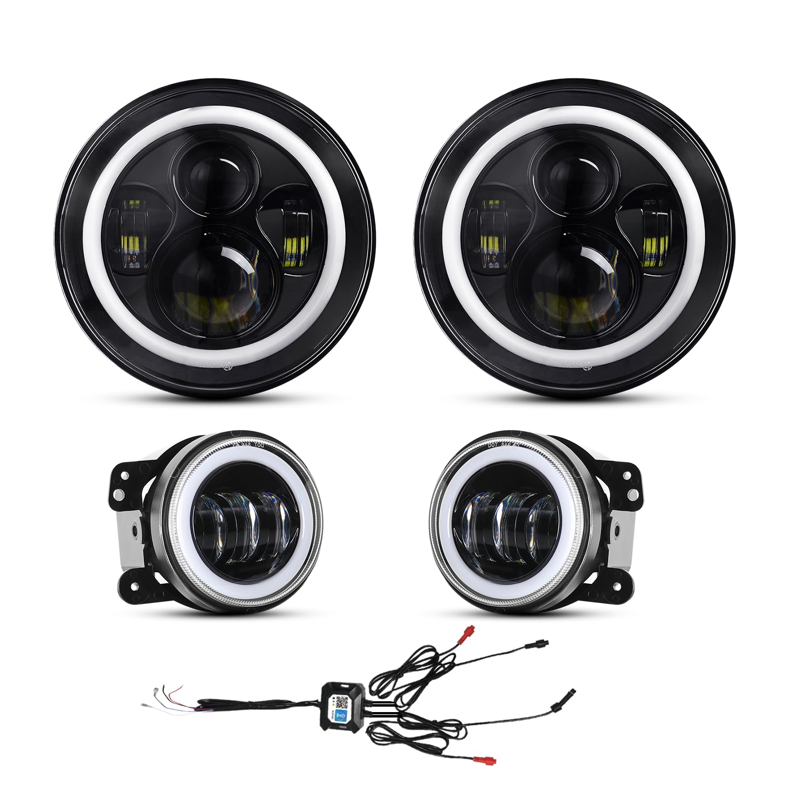 - Super Bright: High Beam,Low Beam,Daytime Running Light and Amber Turn Signal Light for Wrangler headlights. Imported LED chip,ultra-high brightness,300% higher than ordinary halogen light. Quick connect Bluetooth controls,more than 100 modes,los and Android compatible,music mode,flashing function,automatic control,DIY colors.Simple button operation,customize the speed, brightness, and colorful RGB colors of fog light