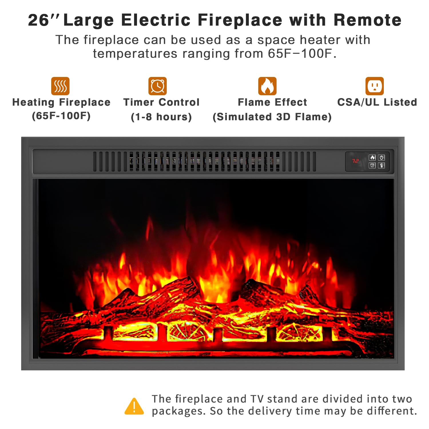 - TV Stand with Fireplace: The item will be delivered in two packages. Combined TV table, storage cabinet and fireplace, the TV stand provides you a good solution for your living room in winter.