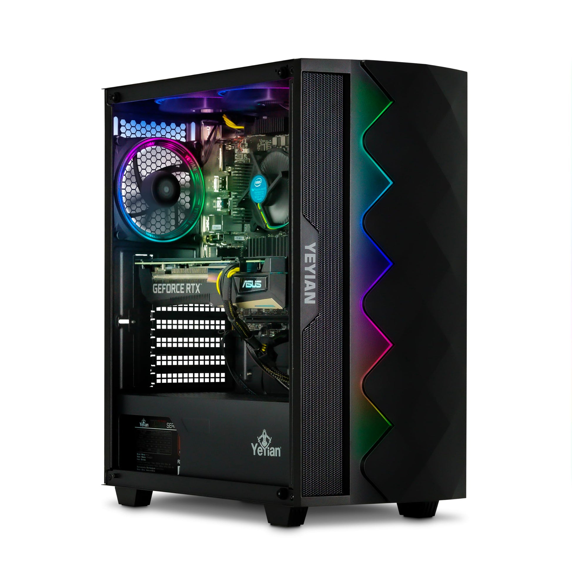 - 【CASE & POWER】 YEYIAN Shoge Gaming Computer Case | ARGB Stock Fan System | 7 x ARGB System Color Adjustable Ring Fans | 650W 80+ Gold Power Supply