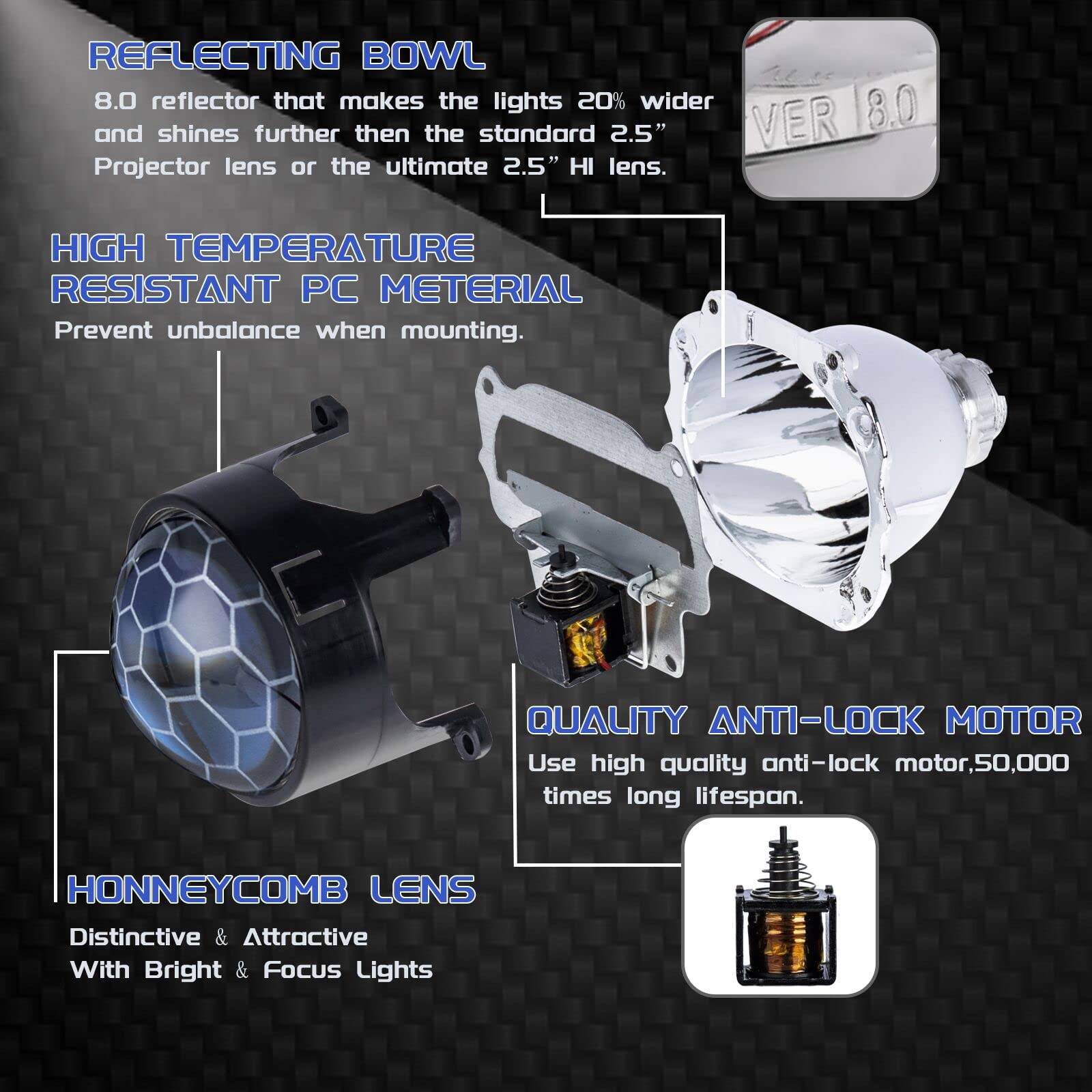 - 【Satisfied Guarantee】30 days no hassle return or exchange and 24 hours online service.if you have any question about our bixenon projector lens,please feel free contact us in any time,we will help you solve the problem.