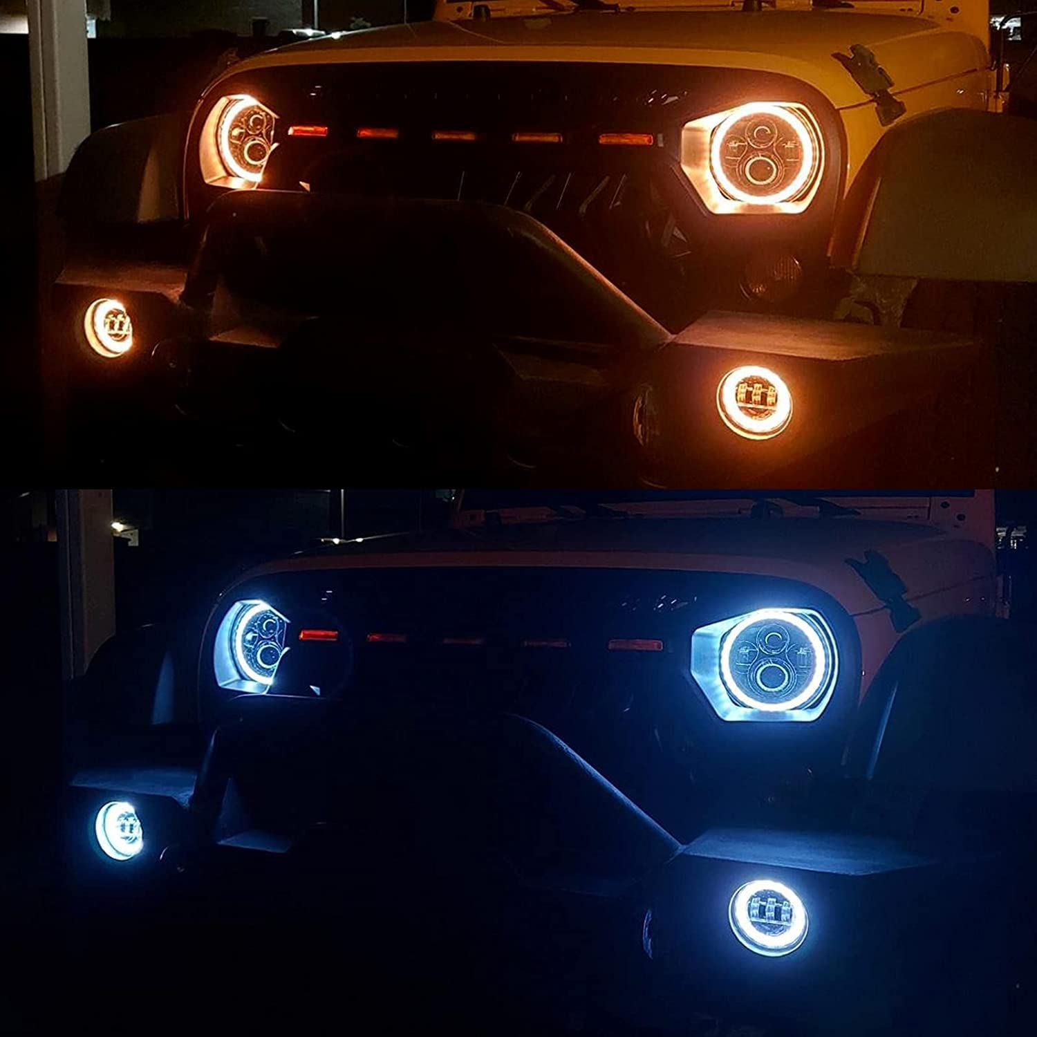 ZiopGTob 7" Inch RGB Halo Headlights & 4" Fog Lights Combo Headlamp Assembly Dual Controlled RGB Light Kits Compatible with 2007-2018 Jeep Wrangler JK JKU
